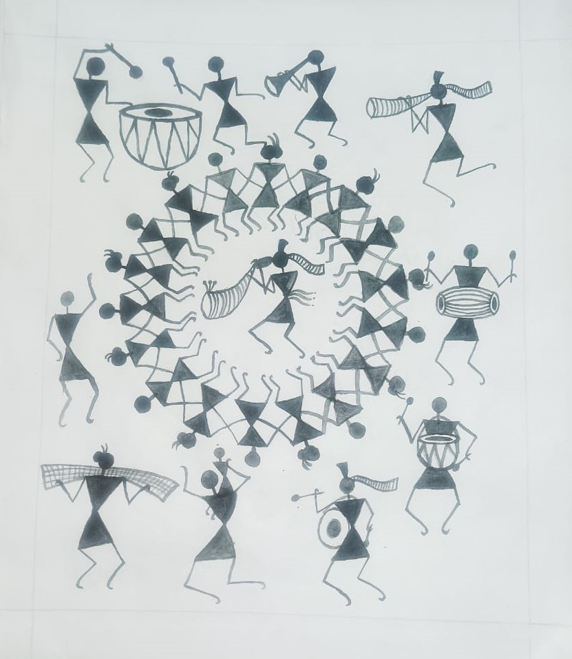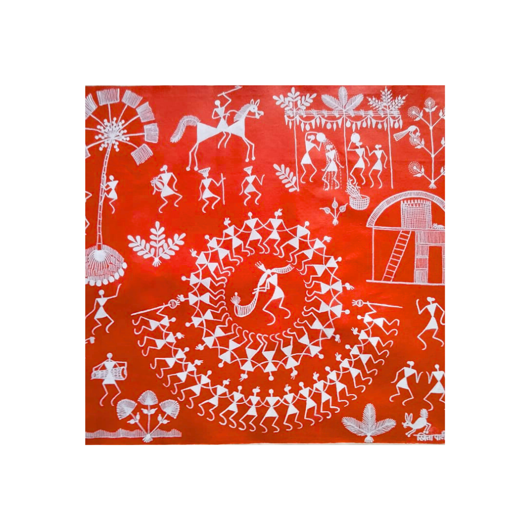 Our course includes teaching how to create small, theme-based Warli miniature paintings that tell unique stories.